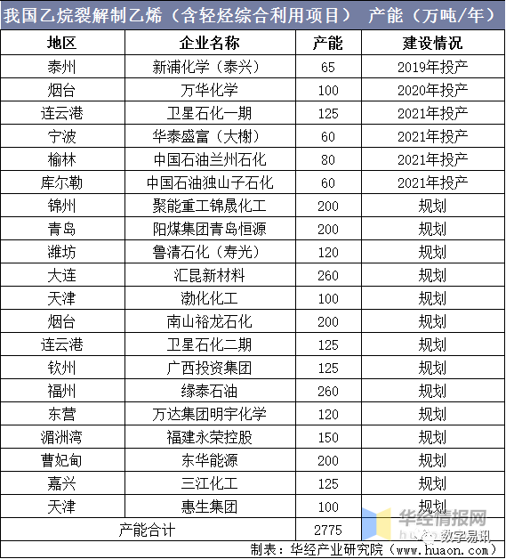 與傳統(tǒng)石腦油裂解路線相比,乙烷裂解具有工藝流程短、裝置投資少、乙烯收率高等優(yōu)勢。特別是在我國煉油產(chǎn)能過剩,乙烯供應不足的現(xiàn)實情況下,依托進口乙烷資源發(fā)展乙烯產(chǎn)業(yè),是解決煉油和化工結構性矛盾的新思路。據(jù)統(tǒng)計,目前國內乙烷裂解制乙烯(包括混合烷烴為原料)項目約20個,產(chǎn)能合計約2775萬噸/年。