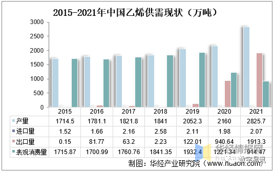21年中國乙烯供需現(xiàn)狀(萬噸)